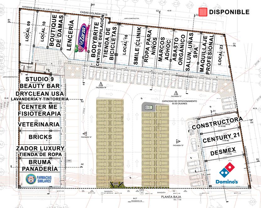 La plaza cuenta con firmas como: Farmacias Similares, Domino's Pizza, La Zarza, Giros Spa, Veterinaria,