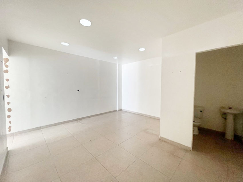 Cuenta con piso de cerámica, plafón sin luminarias, 2 medios baños y divisiones de tablaroca.