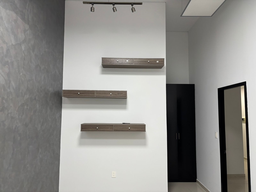 Cuenta con medio baño, persianas, archiveros, dos escritorios y 1 cajón de estacionamiento.