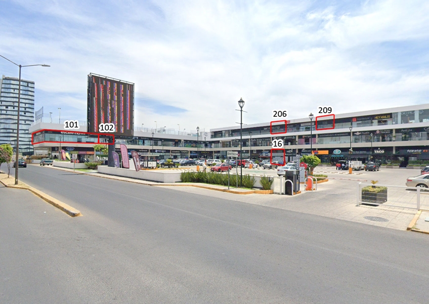 Plaza comercial sobre Av. del Castillo (cuenta con el 65% del flujo vehicular de Vía Atlixcáyotl)