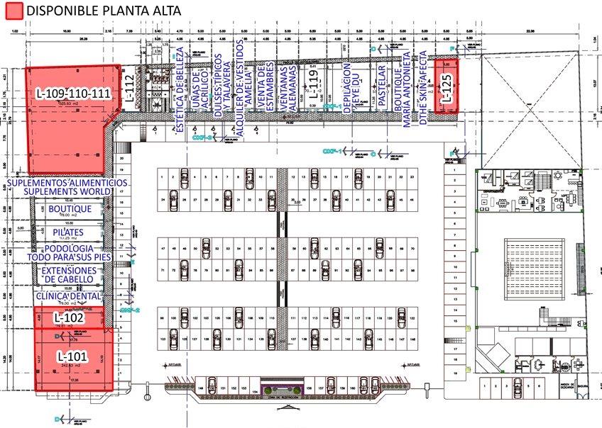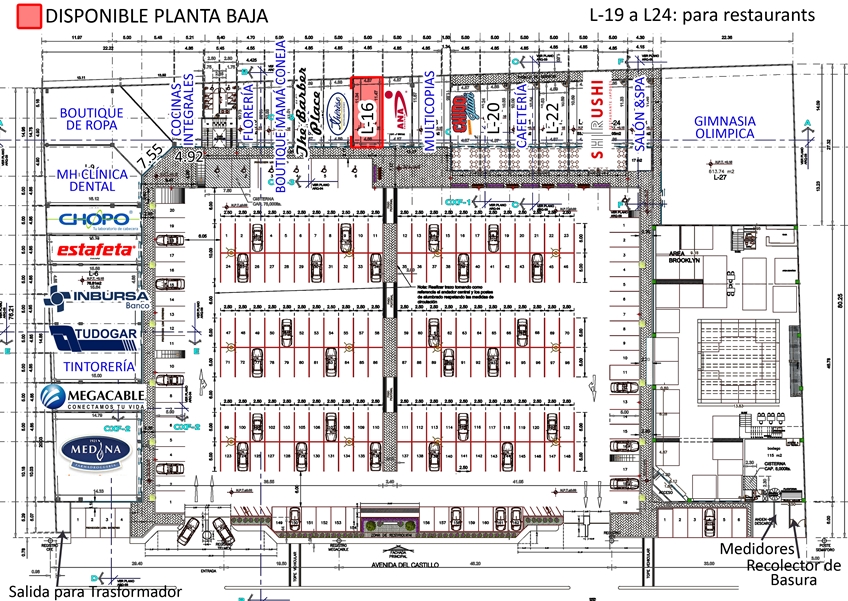 Plaza comercial sobre un terreno de 9,927 m2, cuenta con tienda ancla de 1,200 m2, cuenta