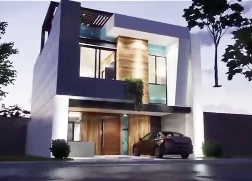 Planta Baja: Cochera para dos autos, Sala con doble altura, Comedor, Cocina integral con barra de granito, Baño de visitas y Jardín.