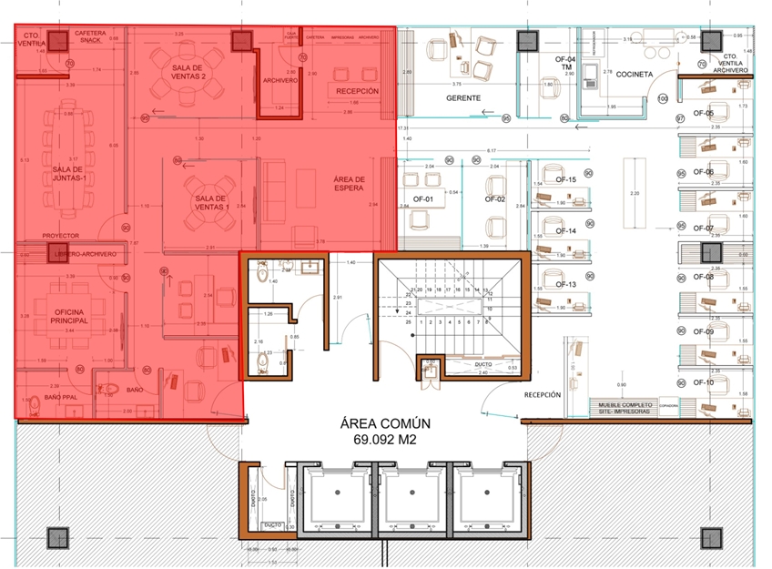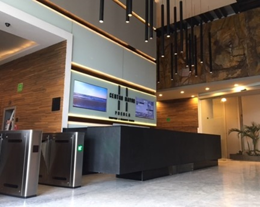 sala de juntas con TV y proyector, recepción, privados, 4 cajones de estacionamiento.