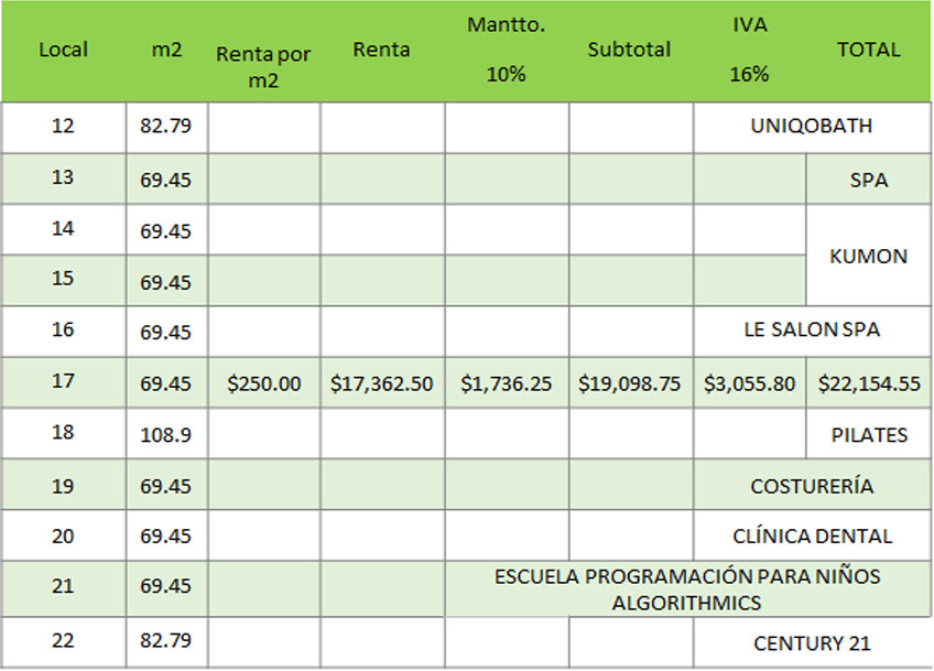 Renta: $17,362.50 MN + Mantto. + IVA.