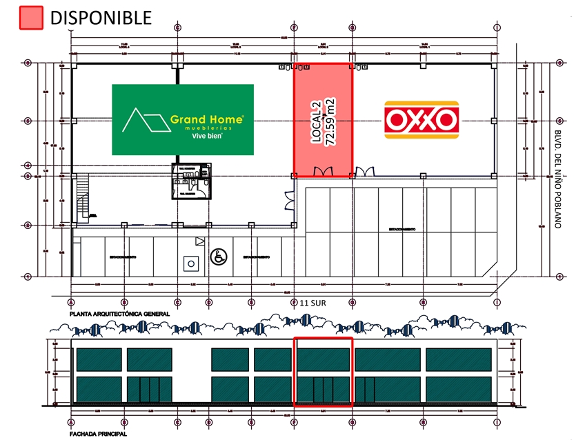 Ubicado en avenida con alto flujo vehicular y de rutas de transporte, cuenta con