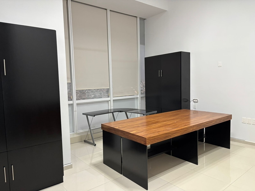 Cuenta con medio baño, persianas, archiveros, dos escritorios y 1 cajón de estacionamiento.