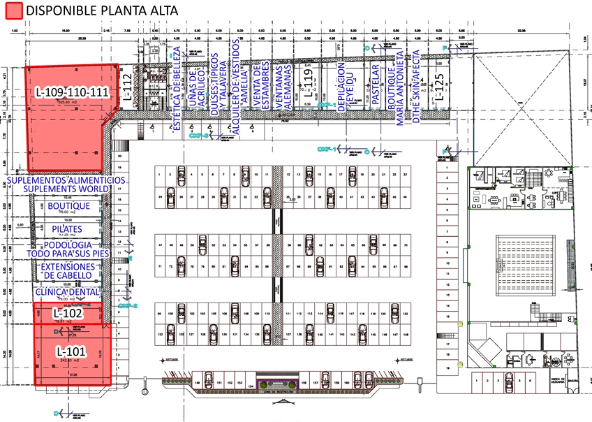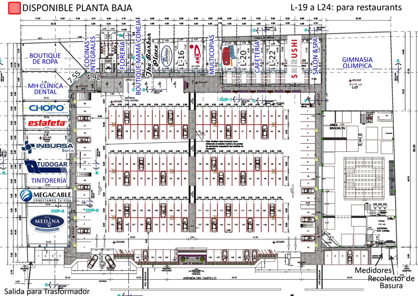 Plaza comercial sobre un terreno de 9,927 m2, cuenta con tienda ancla de 1,200 m2, cuenta